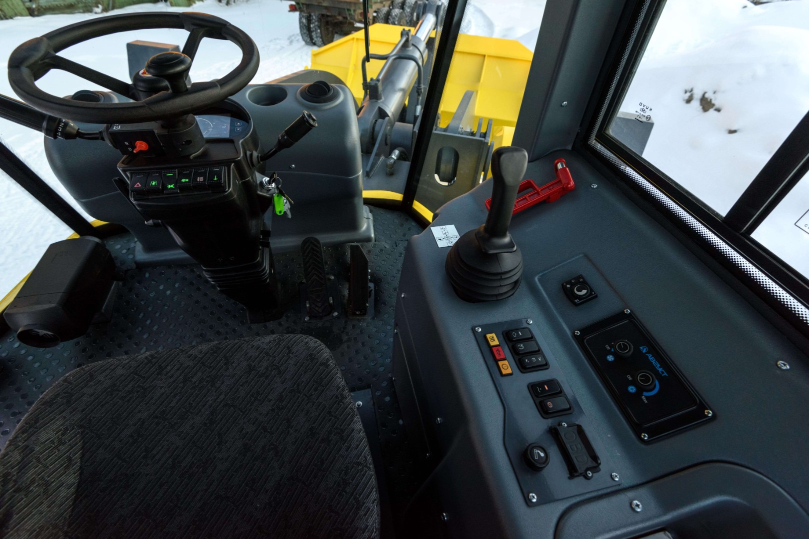 Особое внимание разработчики уделили комфорту и безопасности оператора: двухместная кабина оснащена каркасом FOPS/ROPS. Новые материалы внутренней облицовки кабины позволили кардинально решить вопрос звукоизоляции, сделать интерьер более функциональным, стильным.